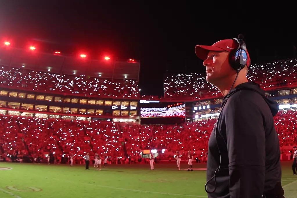 Alabama coach Kalen DeBoer enjoyed some Dixieland Delight Saturday night on the way to the biggest win for a Tide coach in his debut. (Crimson Tide photos/UA athletics)